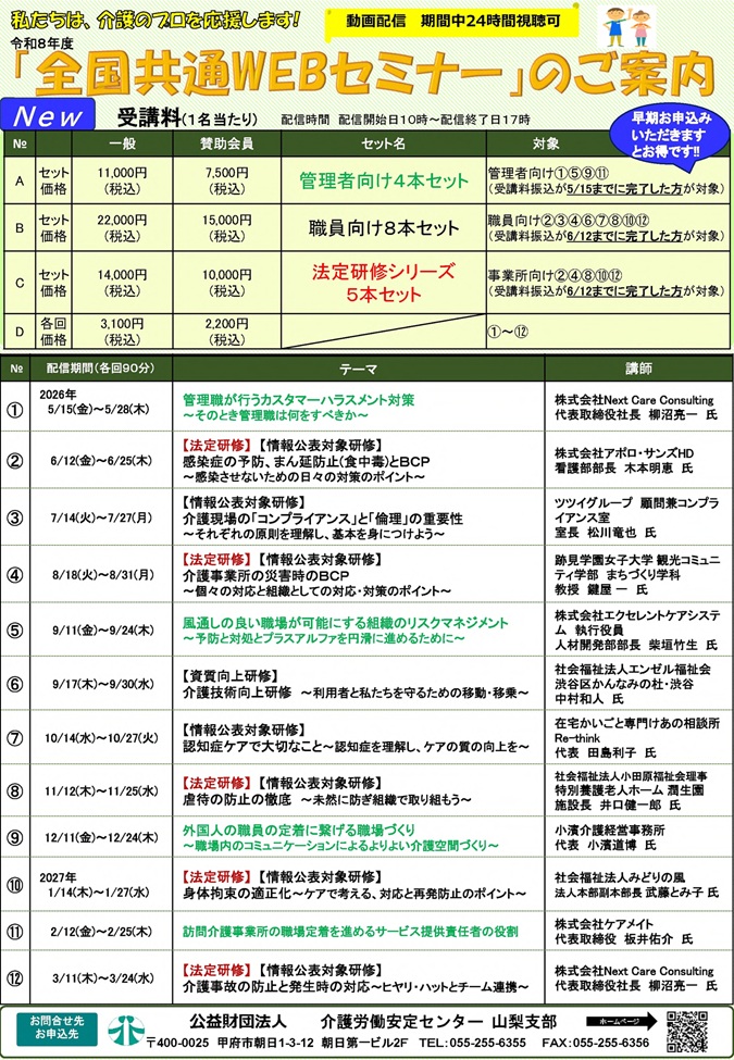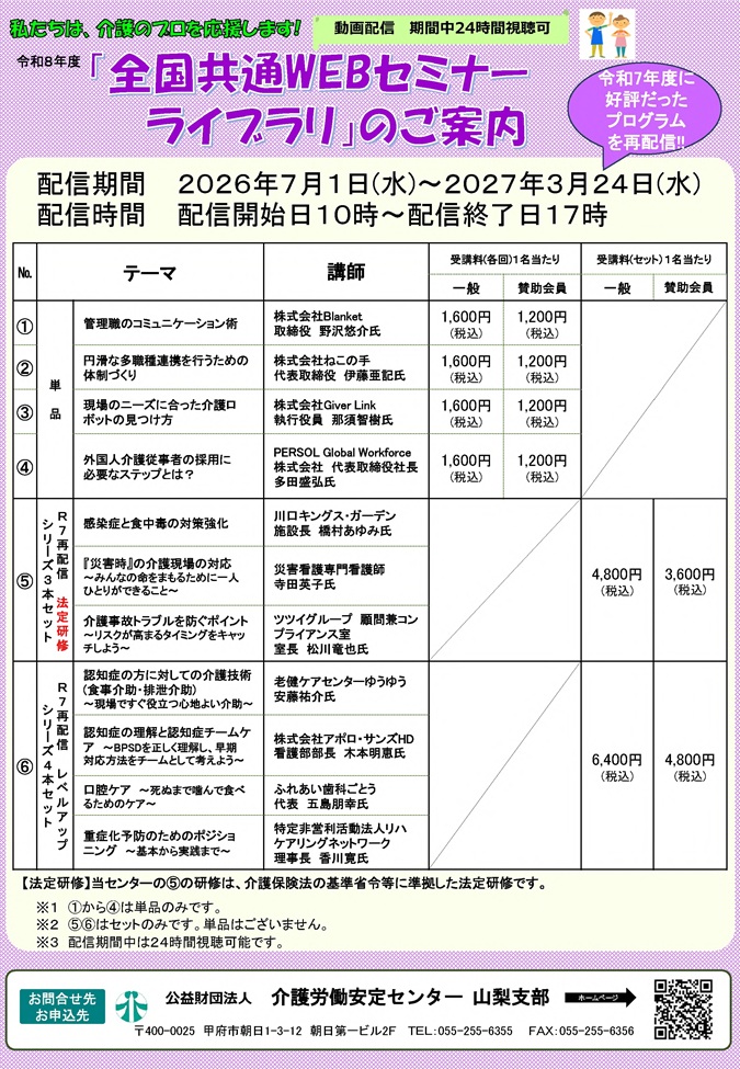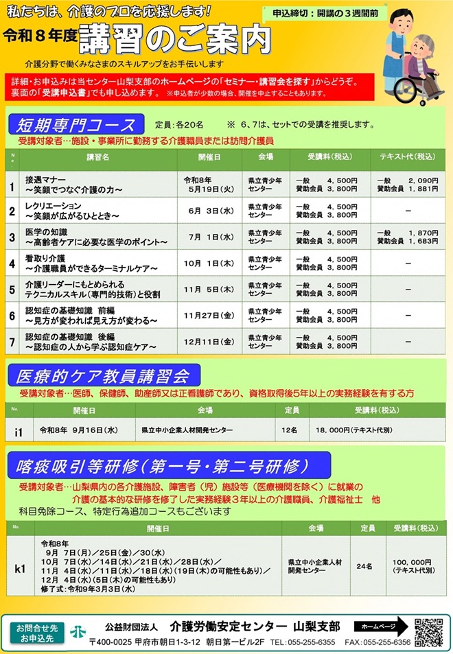 当センター山梨支部ホームページの「セミナー・講習会を探す」からご覧になれますし、